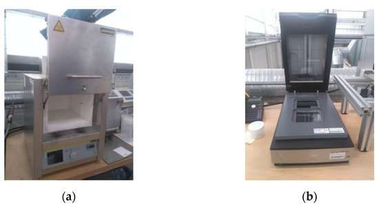 Experimental equipment used for fiber length analysis of the PP/GF30 short fiber-reinforced thermoplastic composite: (a) electric furnace and (b) photo scanner.