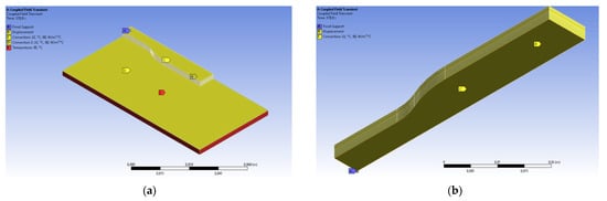 The assumptions (3) and (4) were also successfully employed in previous studies [,] and did not lead to significant errors between experimental and numerical results.