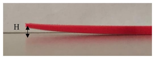 Each sample was measured three times. Then the values were averaged. The parameter that denotes warpage was labeled as “H” and is shown in Figure 6.