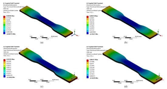 where is a thermal strain and is the linear heat expansion coefficient, I—identity matrix. The result of the thermal strain was used as a boundary condition for the structural analysis. This is governed by the equilibrium equation given by