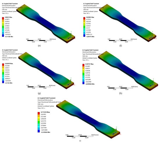 Directional deformation along the y-axis for run: (a) 1; (b) 2; (c) 3; (d) 4; (e) 5; (f) 6; (g) 7; (h) 8; (i) 9.