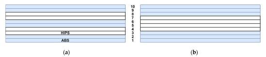 - Rodríguez-Panes, A.; Claver, J.; Camacho, A.M. The influence of manufacturing parameters on the mechanical behaviour of PLA and ABS pieces manufactured by FDM: A comparative analysis. Materials 2018, 11, 1333. [Google Scholar] [CrossRef] [Green Version]