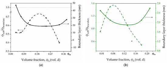 Figure 6 shows the dependence of the boundary layer thickness and the ratio φt/φb on the filler’s volume fraction in the samples PU/SiC_neat and PU/SiC@C/NW.