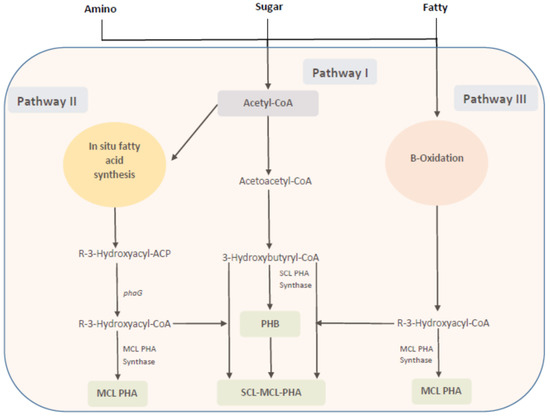 Biochemical pathway for PHA production in a microbial cell Redrawn from [52].