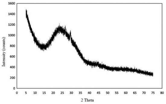 X-ray diffraction pattern for glass powder (windshield glass) (reformatted from []).