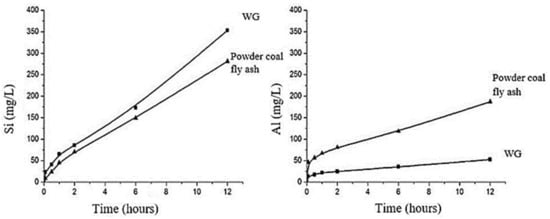 - Hajimohammadi, A.; van Deventer, J.S.J. Dissolution behaviour of source materials for synthesis of geopolymer binders: A kinetic approach. Int. J. Miner. Process. 2016, 153, 80–86. [Google Scholar] [CrossRef]
