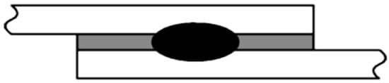 Sadowski et al. [90], conducted comparative experiments on spot welding joints, single-lap-bonded joints and spot-welding–adhesive joints, and the results indicated that there is an improvement in shear strength with the use of hybrid joints (see Figure 8).