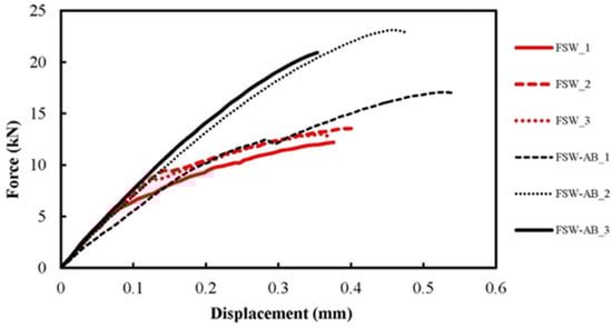 Force–displacement curves of FSW and FSW-AB joints [40].
