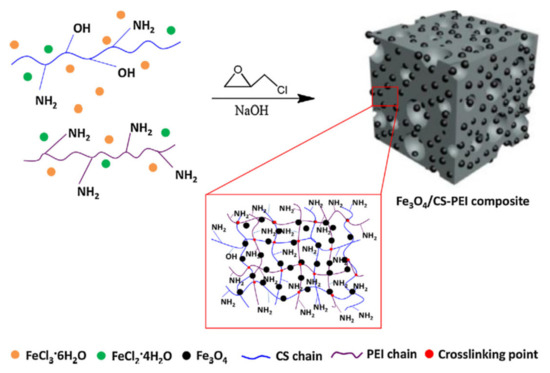 Synthesis of composite gel based on F3O4 and CS/PEI (reprintedwith permission from ref. [36]).