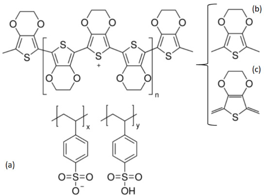 Structure of (a) PEDOT:PSS. (b) Benzoid and (c) quinoid structures of PEDOT.
