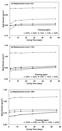 The bulk density of lightweight FGPs with SCS replacement levels. (a) 0%; (b) 10% and (c) 20%.