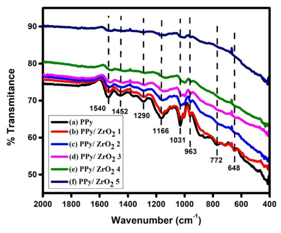 2.3. Synthesis of Polypyrrole/Zirconium Dioxide (PPy/ ZrO2) Composites