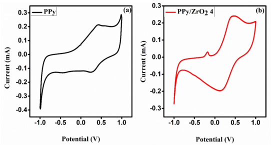 Chicago/Turabian StyleUllah, Rizwan, Mehtab Khan, Rozina Khattak, Nadia Khan, Muhammad Sufaid Khan, and Yaser A. El-Badry. 2021. "Synthesis, Characterization and Evaluation of Supercapacitive Response of Dodecylbenzenesulphonic Acid (DBSA) Doped Polypyrrole/Zirconium Dioxide Composites" Polymers 13, no. 22: 4035. https://doi.org/10.3390/polym13224035