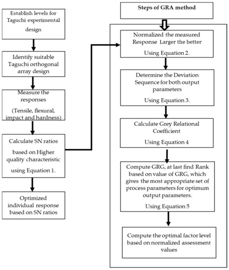 Figure 5 shows the methodology deployed for single- and multi-response optimization based on the Taguchi signal to Noise (S/N) ratios and Grey relational analysis (GRA).