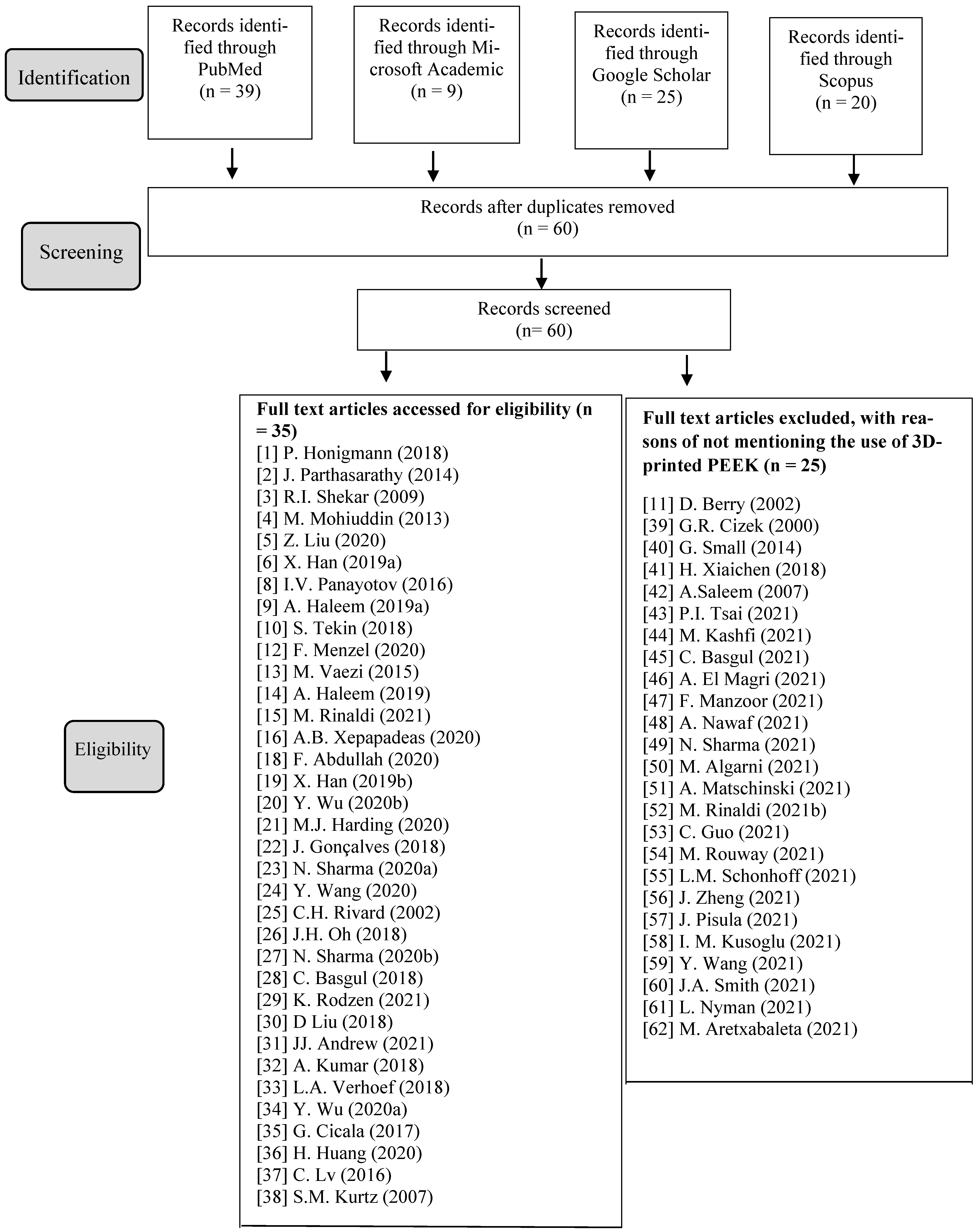 APA StyleDua, R., Rashad, Z., Spears, J., Dunn, G., & Maxwell, M. (2021). Applications of 3D-Printed PEEK via Fused Filament Fabrication: A Systematic Review. Polymers, 13(22), 4046. https://doi.org/10.3390/polym13224046