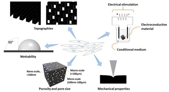 - Richbourg, N.R.; Peppas, N.A.; Sikavitsas, V.I. Tuning the biomimetic behavior of scaffolds for regenerative medicine through surface modifications. J. Tissue Eng. Regen. Med. 2019, 13, 1275–1293. [Google Scholar] [CrossRef]