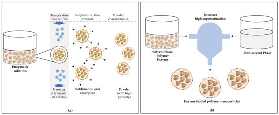 | Nanoprecipitation | Lysozyme and horseradish peroxidase | Poly (lactic acid) Poly (ethylene glycol) | Lysozyme and horseradish peroxidase were shown to retain 99% activity after processing. | [18] |