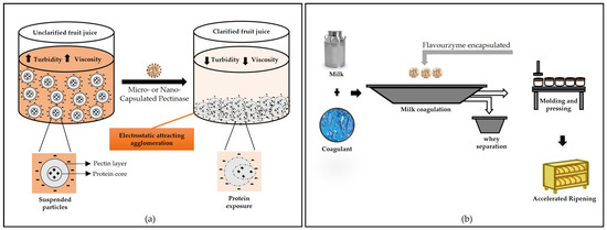 - Anjani, K.; Kailasapathy, K.; Phillips, M. Microencapsulation of Enzymes for Potential Application in Acceleration of Cheese Ripening. Int. Dairy J. 2007, 17, 79–86. [Google Scholar] [CrossRef]