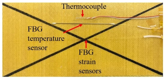 - FBG sensors can be used to monitor the temperature and strain produced during the curing process of thick AF/EP laminates. FBG sensors were used to monitor the temperature overshoot phenomenon and the temperature distribution in the thick AF/EP laminate. The highest temperature was noted at the centre of the laminate. Temperature overheating leads to an error of 21.16% in the FBG measurements, as compared with the thermocouple measurements.