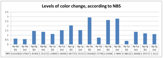 Levels of color change for each subgroup, according to NBS. b(black), w(white).