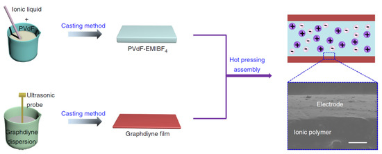 A number of other methods are known to meet the conflicting properties demanded of actuators. These are based on hot clamping technology and are complemented by various methods (e.g., laser processing) to avoid electrode cracking and drying and to guarantee a long service life. The technology of hot clamping is based on the partial penetration of the polymer deep into the graphene film, which is synthesized on a separate solid surface, then separation from this surface, and transferring to the polymer. Our experience shows that this method, when applied to a water-filled polymer like Nafion, is very challenging.