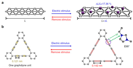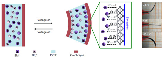 - Lu, C.; Yang, Y.; Wang, J.; Fu, R.; Zhao, X.; Zhao, L.; Ming, Y.; Hu, Y.; Lin, H.; Tao, X.; et al. High-performance graphdiyne-based electrochemical actuators. Nat. Commun. 2018, 9, 752. [Google Scholar] [CrossRef] [PubMed]