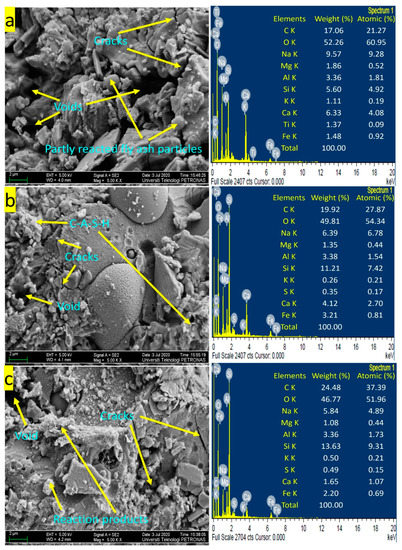 - Songpiriyakij, S.; Kubprasit, T.; Jaturapitakkul, C.; Chindaprasirt, P. Compressive strength and degree of reaction of biomass- and fly ash-based geopolymer. Constr. Build. Mater. 2010, 24, 236–240. [Google Scholar] [CrossRef]