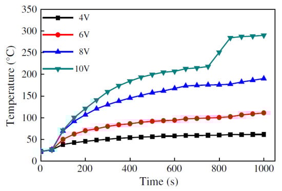 Curves of temperature dependence on different applied voltages at room temperature. Reprinted with permission from [].