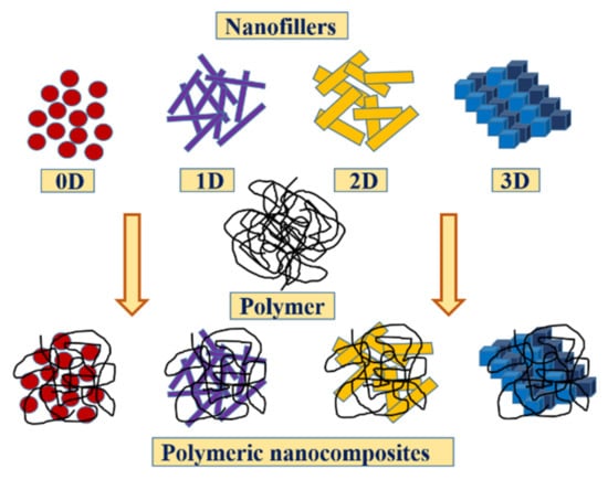 Nanofillers can be categorized into zero- (0D), one- (1D), two- (2D), or three-dimensional (3D) nanoparticles according to their dimensions at the nanoscale (Figure 1).