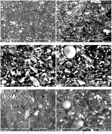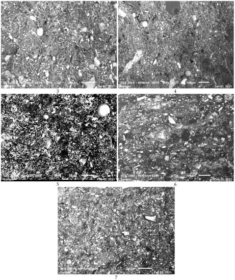 Microstructures of the composites studied here from the composite (1–7), respectively, after sectioning and polishing.