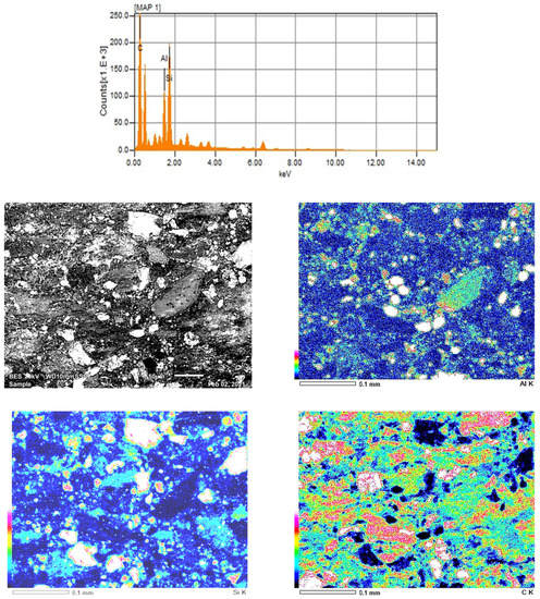 Energy Dispersive Spectroscopy (EDS) analyses is used to control for the chemical composition of the rubber-based composites as given for the composite n°6 in Figure 3.