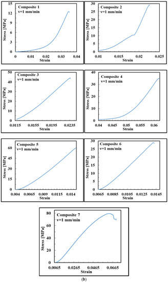 The graphs in Figure 4b show that the addition of glass bubble microspheres, aluminum chips (Al-chips) and fine gamma alumina fibers (γ-Al2O3) increases the flexural stress of the matrix. Furthermore, the addition of glass bubbles decreases of the strain at break and the density of the composite.
