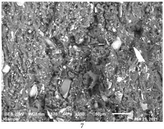 Fracture surfaces of all of the compositions studied here were presented in the Figure 7. At the first observation, quasi all of the compositions have shown that there is a strong cohesion between the reinforcements and matrix. It means that the manufacturing parameters were well chosen according to the devulcanization process of the recycled rubber and molar ratio of each reinforcement in the matrix.