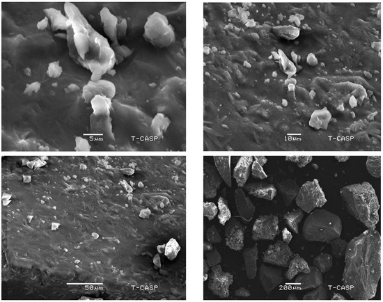Figure 3. Scanning electron microscopy micrographs of M. parviflora mucilage obtained from the leaves (MLM) at different magnifications (2700×, 1000×, 500×, 100×).