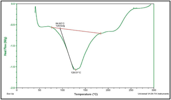 Figure 4. Differential scanning calorimetry (DSC) thermogram of M. parviflora mucilage, obtained from the leaves (MLM).