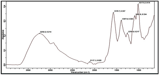 Figure 5. FTIR spectrum of M. parviflora mucilage obtained from the leaves (MLM).