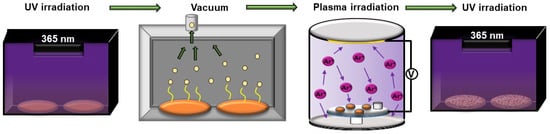 2.3.4. Step 4. Deswelling, UV Light Irradiation, and Plasma Exposure Processes