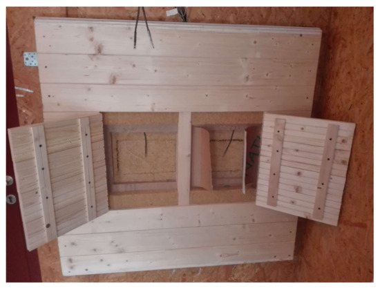 LW1 and LW2 walls were installed into the north-facing wall of the research timber structure as shown in Figure 3 and exposed to an exterior weather. Interior conditions simulated human occupancy. Interior side of the walls is shown in Figure 4. In-situ conditions were recorded by measuring tools: air temperature and relative air humidity at 1-h intervals. The recorded conditions are shown in Figure 5 and Figure 6.