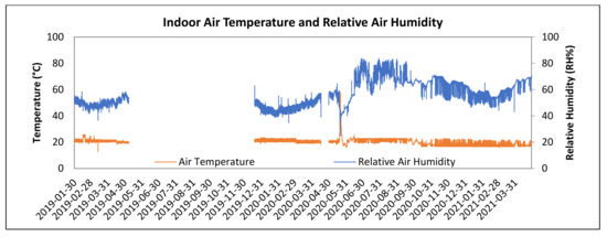 Indoor Air Temperature and Relative Air Humidity during the recorded period.