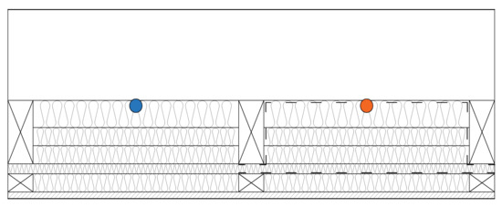 Climatic conditions in the walls were recorded by the measuring tool AHLBORN ALMEMO 5690 and sensors AHLBORN FHAD46C2 recording air temperature, relative air humidity and air pressure at 1-h intervals. The layout of the sensors is shown in Figure 7.
