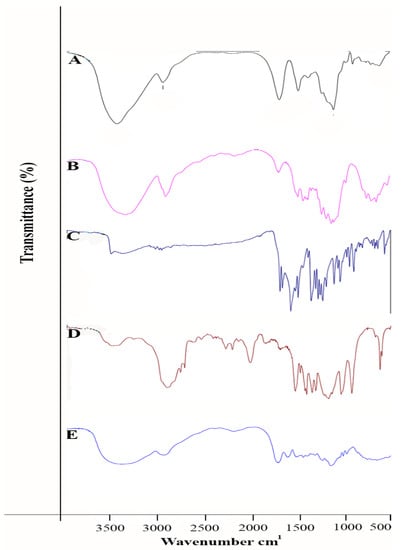 FTIR-Spectrometer of CL, CUR-nps/ALG/CL, CUR, ALG