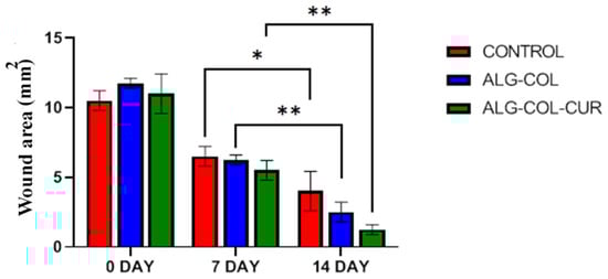 | 15 days | Curcumin/chitosan nanoparticles-collagen-alginate scaffolds | 98.1 ± 3.4% | [18] |