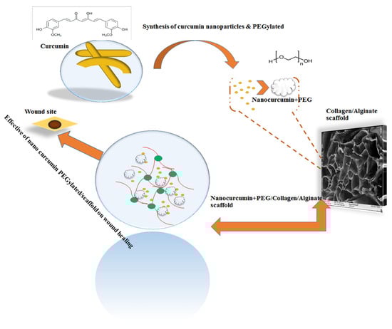 Mobaraki, M.; Bizari, D.; Soltani, M.; Khshmohabat, H.; Raahemifar, K.; Akbarzade Amirdehi, M. The Effects of Curcumin Nanoparticles Incorporated into Collagen-Alginate Scaffold on Wound Healing of Skin Tissue in Trauma Patients. Polymers 2021, 13, 4291. https://doi.org/10.3390/polym13244291