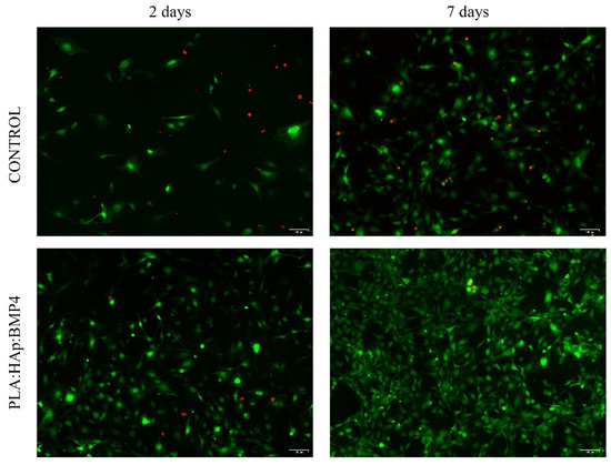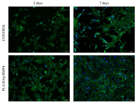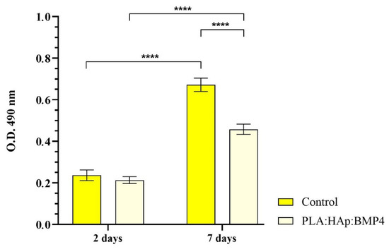 3.3. In Vitro Biocompatibility of PLA/HAp/BMP4 Coatings