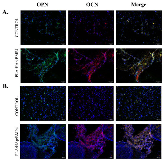 - Wu, S.; Xiao, Z.; Song, J.; Li, M.; Li, W. Evaluation of bmp-2 enhances the osteoblast differentiation of human amnion mesenchymal stem cells seeded on nano-hydroxyapatite/collagen/poly(l-lactide). Int. J. Mol. Sci. 2018, 19, 2171. [Google Scholar] [CrossRef] [PubMed] [Green Version]