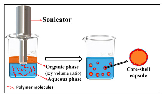 Schematic diagram of ultrasonication-assisted emulsification-coacervation.
