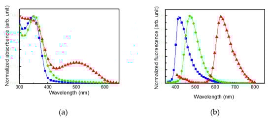 (a) UV-vis and (b) fluorescence spectra of CP films.