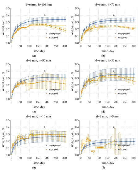 APA StyleKychkin, A. K., Gavrilieva, A. A., Vasilieva, A. A., Kychkin, A. A., Lebedev, M. P., & Sivtseva, A. V. (2021). Assessment of Extremely Cold Subarctic Climate Environment Destruction of the Basalt Fiber Reinforced Epoxy (BFRE) Rebar Using Its Moisture Uptake Kinetics. Polymers, 13(24), 4325. https://doi.org/10.3390/polym13244325