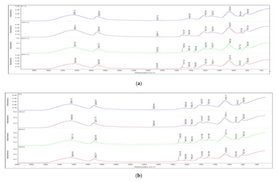 On the other hand, the presence of C–H bonding peak can also be clearly seen at the band region of 2900 cm−1 on FTIR spectrums, as depicted in Figure 3 and Figure 4. By referring to Table 2, the increasing of carbon nanotubes loading level from 0.5 to 1 phr has slightly increased the wavenumber of C–H bonds stretching for non-irradiated PVOH/CNTs composites. This indicates the good interaction effect between the carbon nanotubes particles and PVOH macromolecular chains inside polymer matrix. This is due to how the carbon nanotubes particles, with non-polar nature, could interact well with the non-polar saturated C–H bonds of PVOH macromolecular chains and thus, induce the strength of C–H stretching of non-irradiated PVOH/CNTs composites [3]. When the loading level of carbon nanotubes was further increased from 1 to 2 phr, the wavenumber of C–H bonds in polymer matrix of non-irradiated PVOH/CNTs composites was marginally reduced from 2922.39 to 2920.67 cm−1, as observed in Table 2 This showed that the incorporation of higher loading level of carbon nanotubes into PVOH matrix of non-irradiated PVOH/CNTs composites has slightly weakened the interaction effect between carbon nanotubes particles by agglomerating the carbon nanotubes particles into larger particles. The agglomeration of carbon nanotubes particles in PVOH matrix has weakened the interaction of carbon nanotubes particles and PVOH matrix by changing the intermolecular vibrations within the PVOH matrix. Thus, the changes in intermolecular vibrations in the polymer matrix have further weakened the original intermolecular interaction in the PVOH matrix and induced the wavenumber of C–H stretching.
