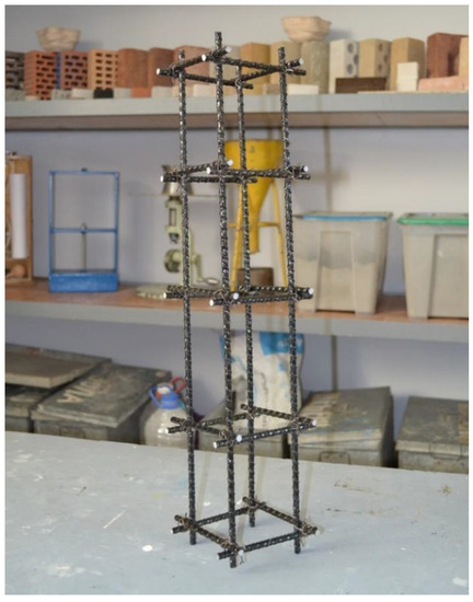 A diagram of the reinforcement of the prototypes is shown in Figure 1, and a photograph of the frame made of polymer composite reinforcement is shown in Figure 2. The main characteristics of the prototypes are presented in Table 8.